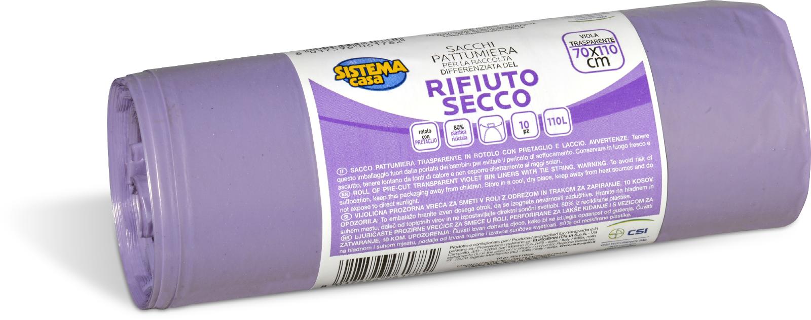 PURPLE RUBBISH BAGS WITH STRING, 70X110 CM, 10 PCS